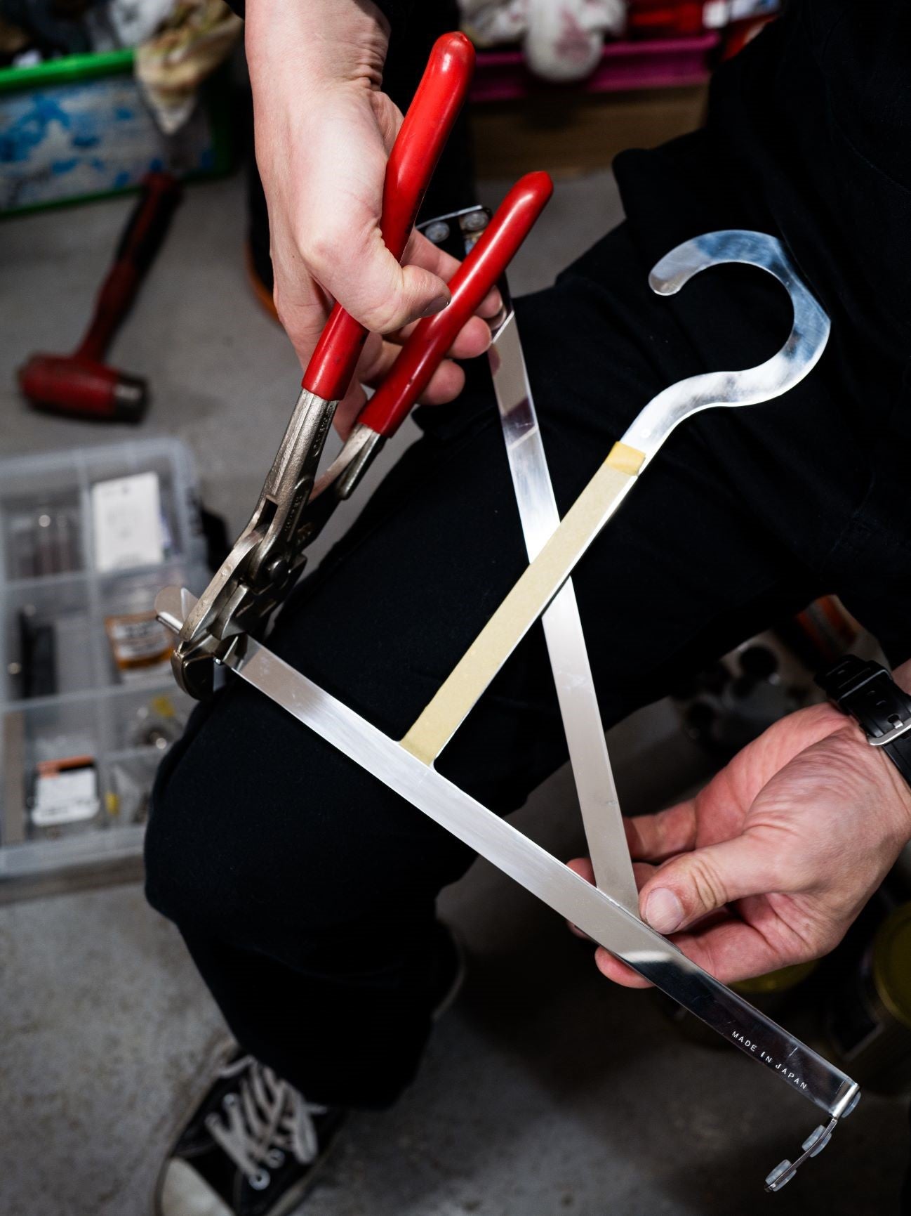 私たちが作るハンガーは一つ一つ手作業で仕上げています。なぜなら材料の磨き込みと組み立ての精度を保つためには指先の感覚に頼ることが必要だからです。